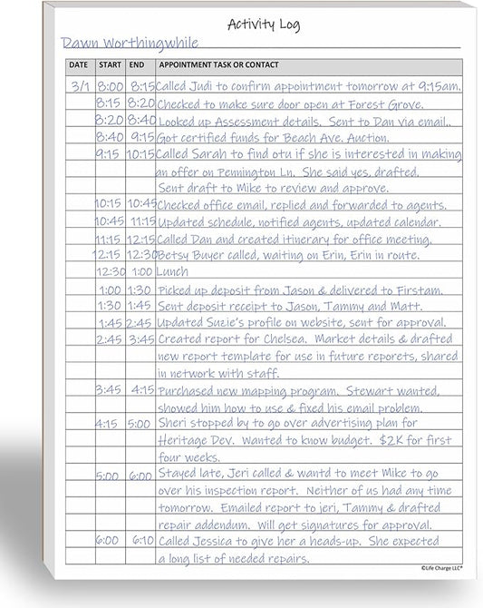 Activity Log Notepad, 60 Page Planning Pad to List a Task, Action or Contact. A Versatile Work Tool to Track Time & Organize Office Productivity. 8.5 X 11, A4 Sheets.