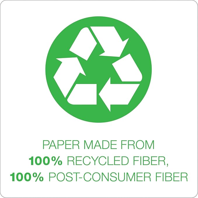 - Paper made from 100% recycled fiber with 100% post-consumer fiber