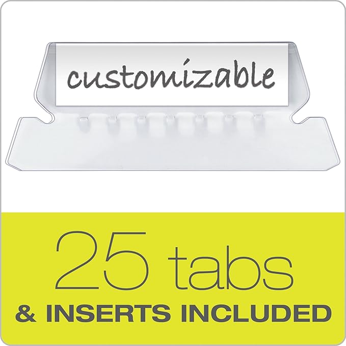 - Includes printable label sheet and 25 clear 1/5-cut tabs
