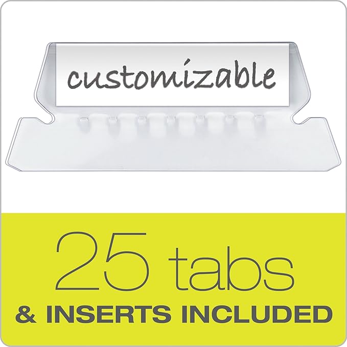 - Includes printable label sheet and 25 clear 1/5-cut tabs