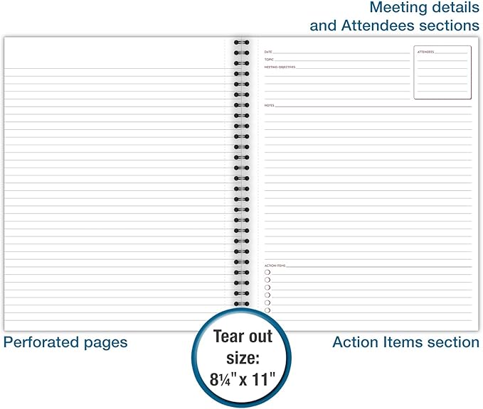 - Unique format helps organize your meeting notes and action items
