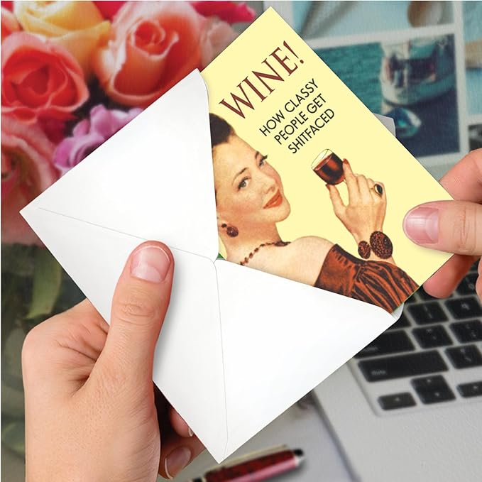 NobleWorks - 1 Funny Vintage Birthday Card - Hilarious Retro Greeting, Grown-Up Humor for Happy Birthdays - Wine Ephemera 0830