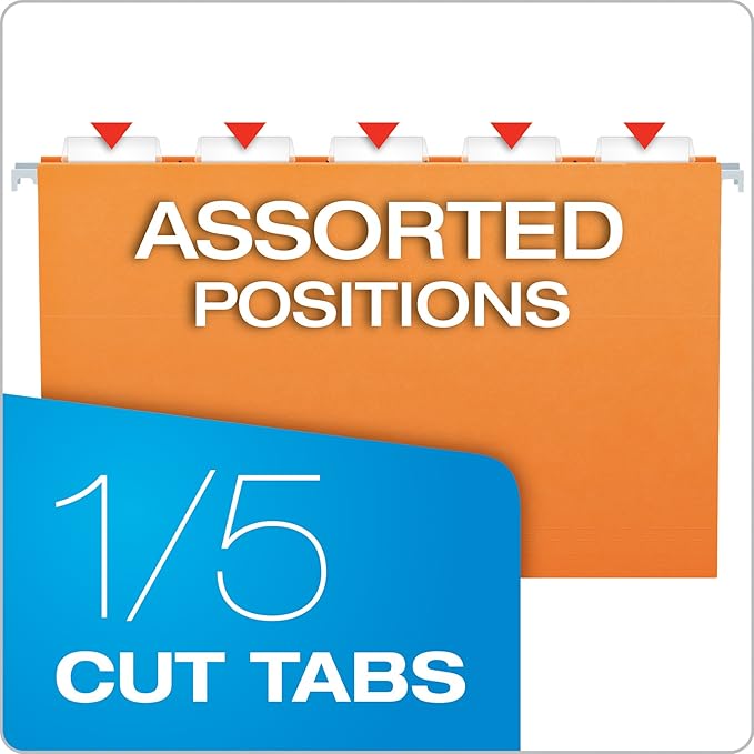 Pendaflex Recycled Hanging Folders, Legal Size, Orange, 1/5 Cut, 25/BX (81627)