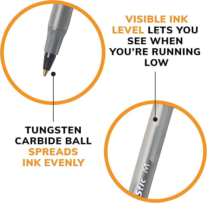 - One 36-count pack of BIC Round Stic Xtra Life Black Ballpoint Pens