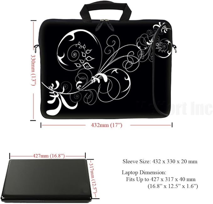 Meffort Inc 17 Inch Neoprene Laptop Bag with Extra Side Pocket, Soft Carrying Handle & Removable Shoulder Strap Fit 16" to 17.3" Size - White Swirl