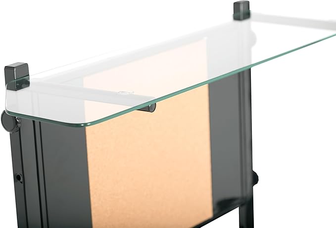 - 24"W x 9"D Tower Shelf for Storage, Tempered Blue Safety Glass Top & Shelf, Combo Magnetic / Cork Board with 4 Magnets