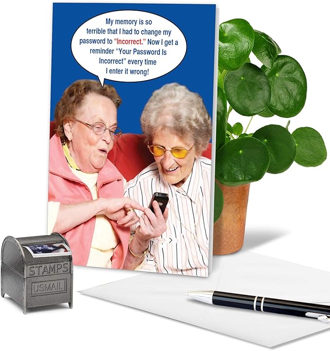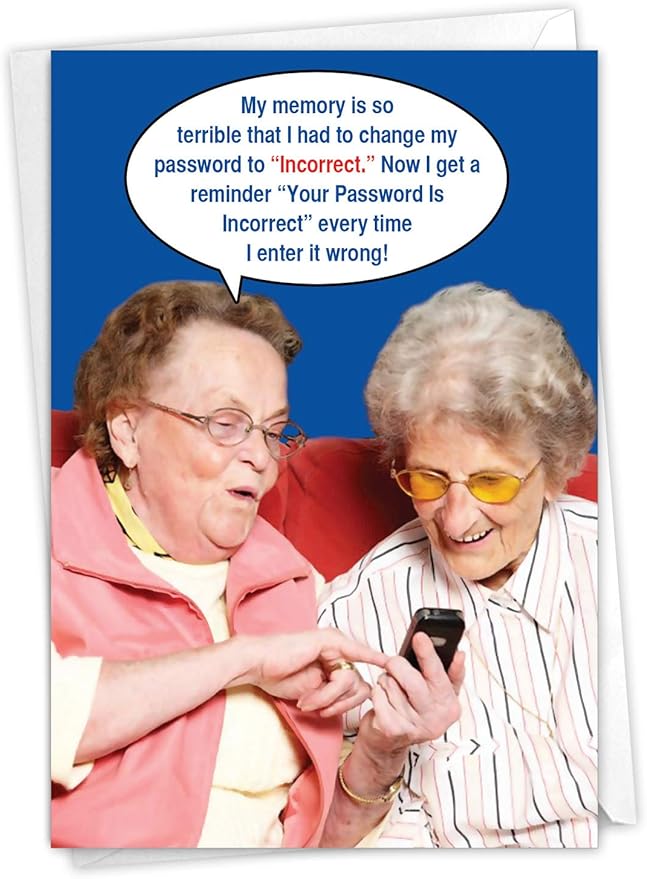 - INSIDE GREETING: "To Continue Enter The Correct 2 Digit Age And Press [Happy Birthday]" COVER - My memory is so terrible that I had to change my password to "Incorrect." Now, I get a reminder "Your Password Is Incorrect" every time I enter it wrong!