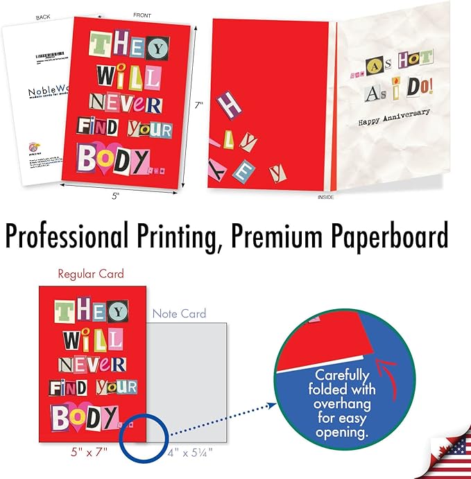 - USE - The perfect, Hysterical card for writing Anniversary wishes! Card's cover page is printed with a high gloss finish, and the interior pages provide a smooth, flawless writing surface. Perfect for men, women, wife, husband, and friends.