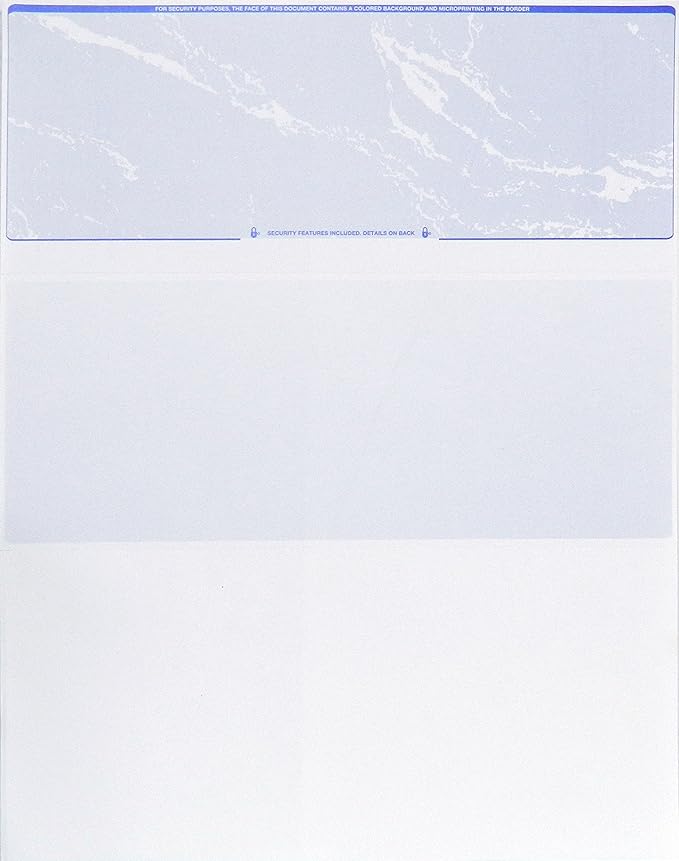 - ADVANCED SECURITY FEATURES – Details Include Marble Blue Color Background, Micro Printed Border, Watermark & Signature Line for Maximum Fraud Protection