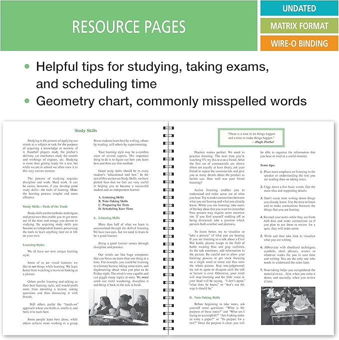 - Recommended Uses For Product : Middle school students' daily academic planning, note-taking, and study skills development