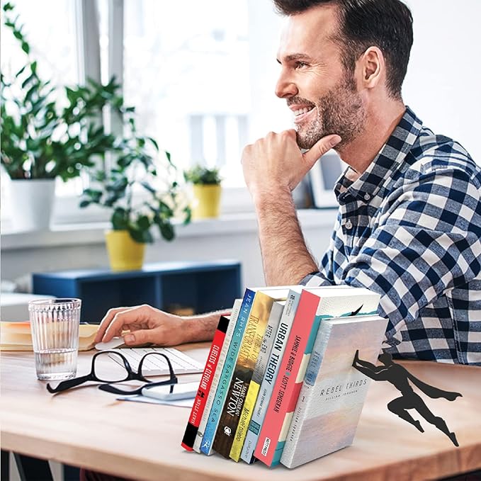 Artori Design Book Ends to Hold Books Heavy Duty - Hidden Metal Bookends for Shelves Desk or countertop - Bookend Book Holder for Home Decorative - Gift for Book Lovers and Home Décor (Book&Hero)