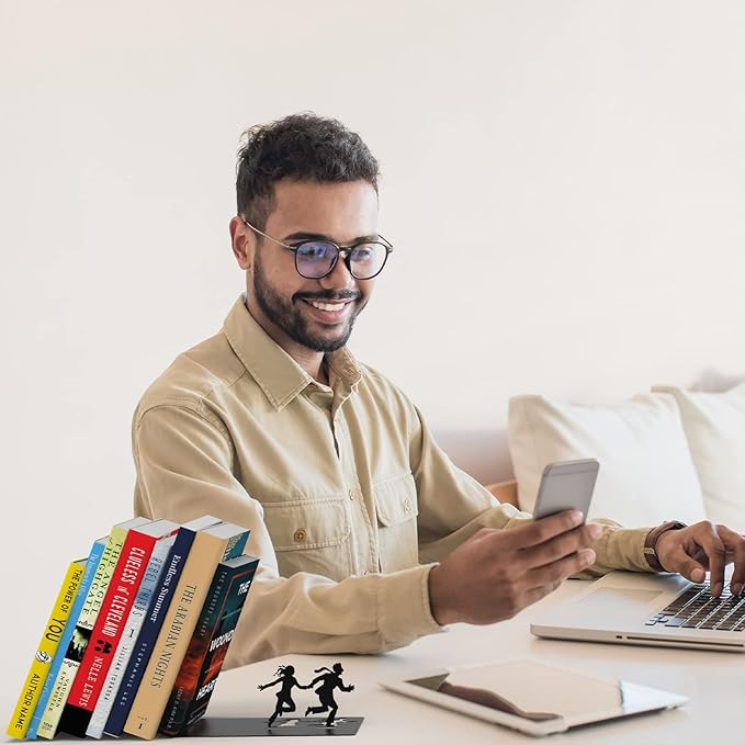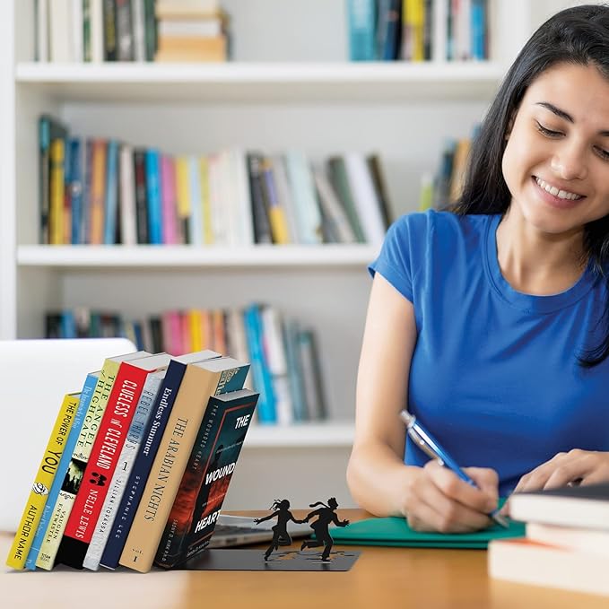 Artori Design Book Ends to Hold Books Heavy Duty - Hidden Metal Bookends for Shelves Desk or countertop - Bookend Book Holder for Home Decorative - Gift for Book Lovers and Home Decor (Runaway)