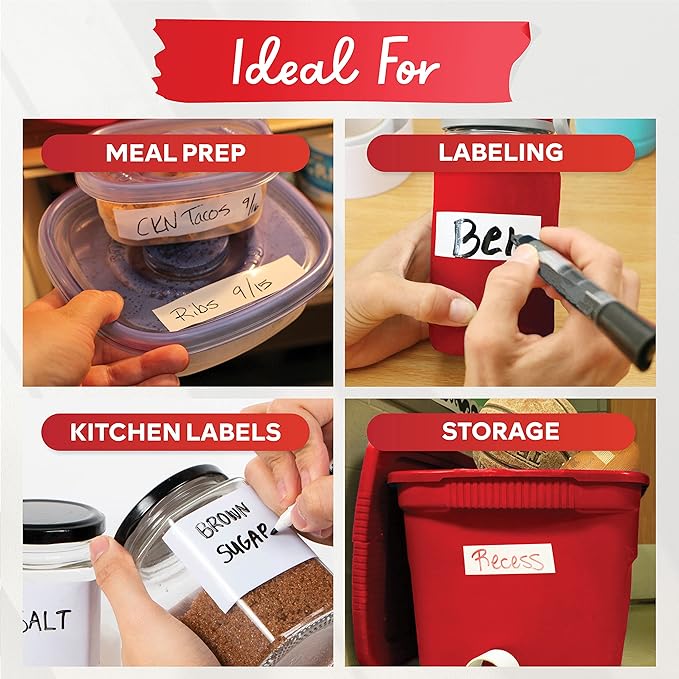 XFasten Dry Erase Tape White 2-Inch x 15-Feet Zero Smudging Ghosting-Free Whiteboard Tape, Reusable Dry Erase Labels for Storage Bins, Sentence Strips for Teachers