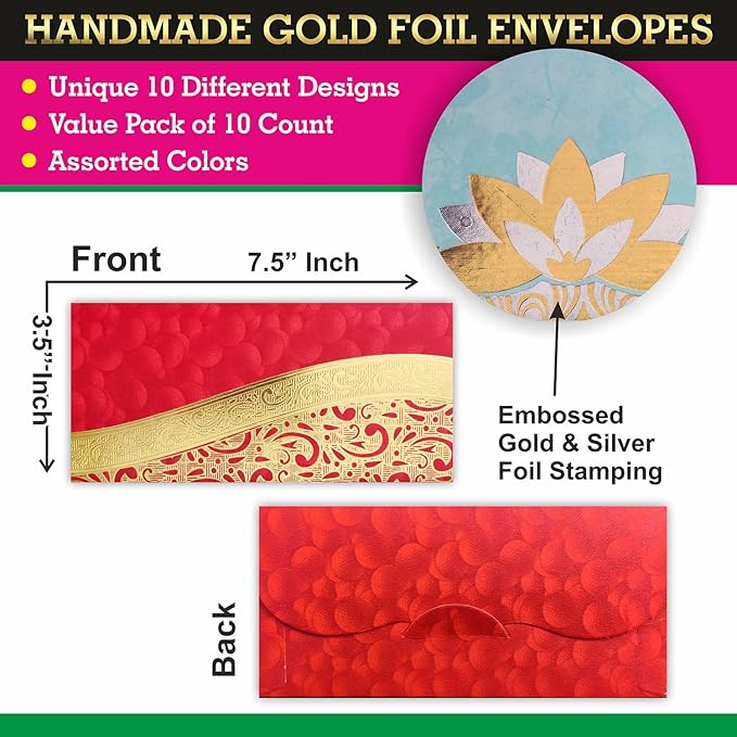 - HIGH QUALITY : Premium Gift Envelopes with Gold and Silver Foil Letterpress / Stamping Designs on Them. PURELY HANDMADE & NOT SCENTED.
