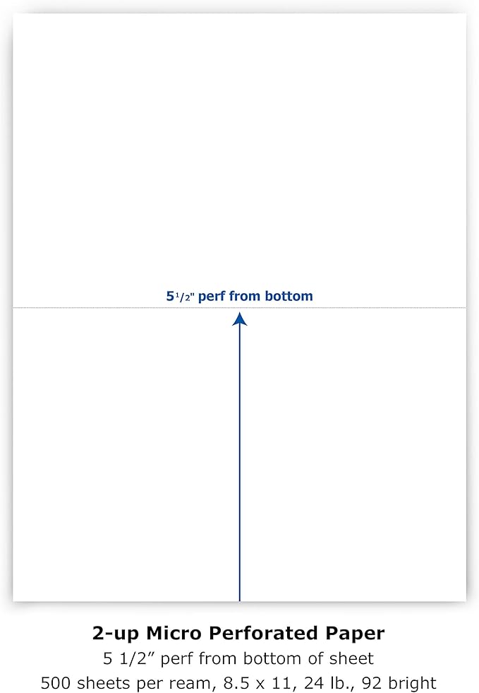 PrintWorks Half Sheet Perforated Paper, 8.5 x 11, 24 lb, 500 Sheets, White (04118)