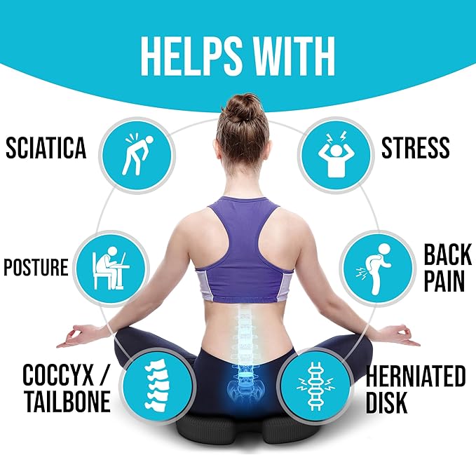 - Enjoy Pain-Free Life with Ultimate Comfort – Our back support pillow is adjustable to the contours of your body, making it a great lumbar support pillow while driving or working long hours. The seat cushion for office chair is of utmost relief for coccyx/tailbone pain.