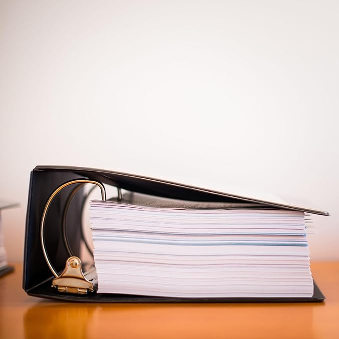 - Great Capacity — 550 sheet capacity for 8.5" x 11" sheet size. Secure more documents in just one three ring binder. The binder rings are strong enough to keep your documents organized. All the papers you need can be stored in one single binder. Binder dimensions: 12" x 11.6" x 3.2"