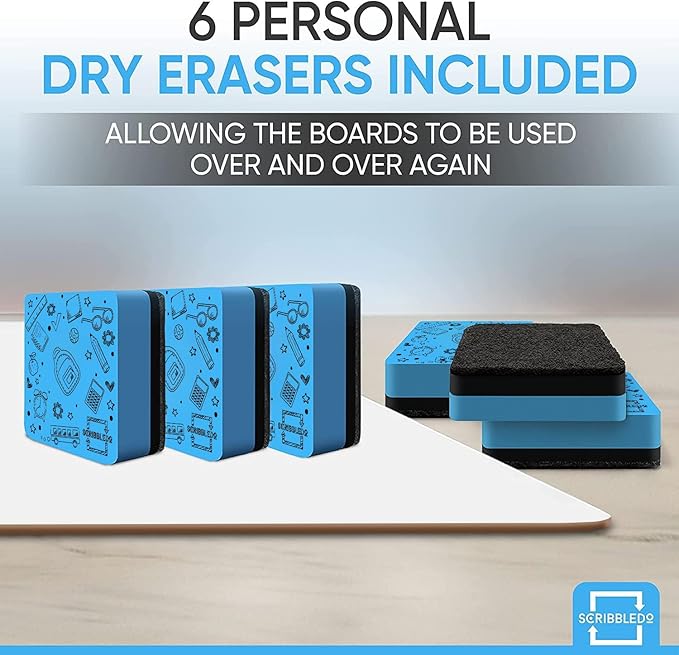 Scribbledo 6 Pack Small White Board Dry Erase Boards Classroom Pack Mini White Boards 9" x12” Personal Whiteboards for Students Teachers School Supplies Lapboards l 6 Mini Whiteboard Erasers Included