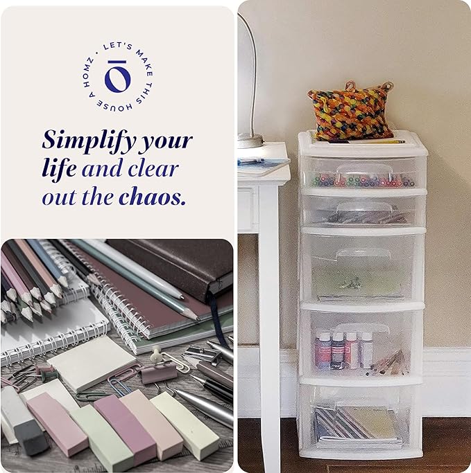 HOMZ 2-Pack 5-Drawer Storage Unit, Home & Office Plastic Organizer, White Frame