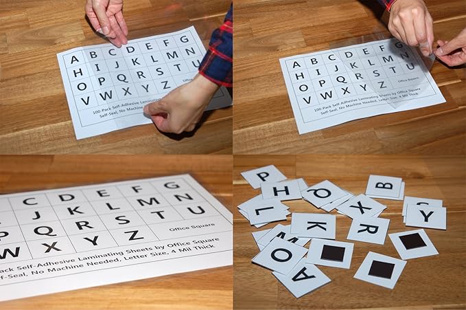 100-Pack Self-Adhesive Laminating Sheets by Office Square, Self-Seal, No Machine Needed, Letter Size, 4 Mil Thick