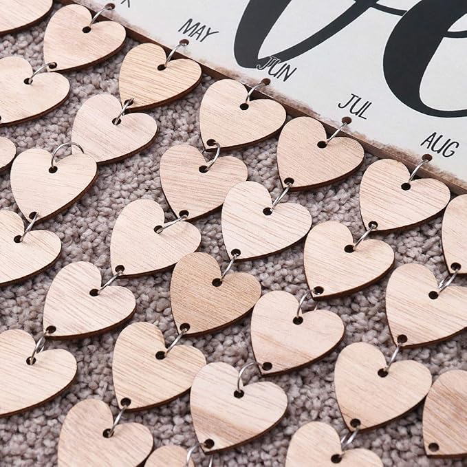 WINOMO Family Birthday Board Plaque DIY Hanging Wooden Birthday Reminder Calendar for Mom Dad Grandma Grandpa with 50pcs Wooden Hearts