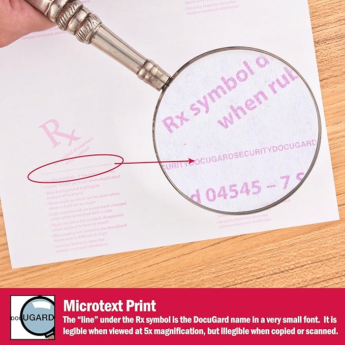 - Fight fraud with DocuGard’s advanced blue security paper that has seven layered features ensuring that your prescriptions and documents cannot be tampered with or accurately duplicated.