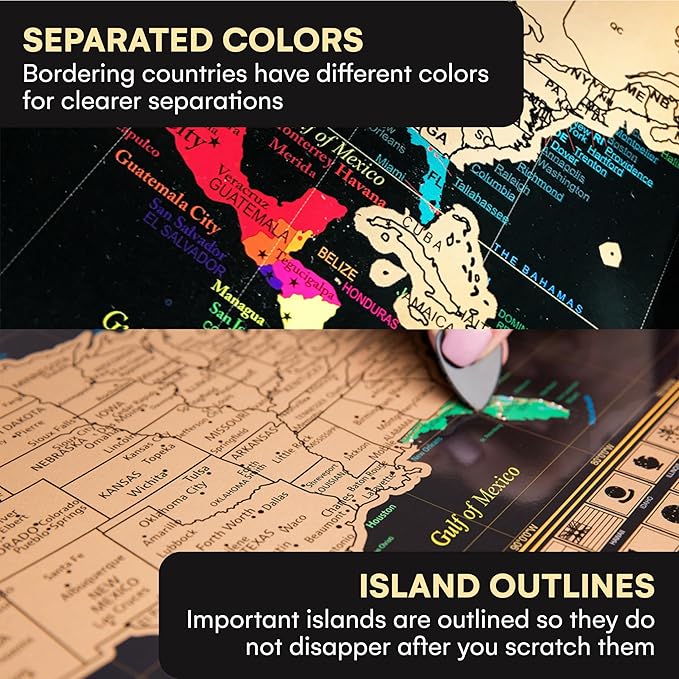 - Track Your Adventures: Scratch off map of the world poster designed to track your travels; vibrant colors revealed after scratching; showcase your adventures and creating a visual memory