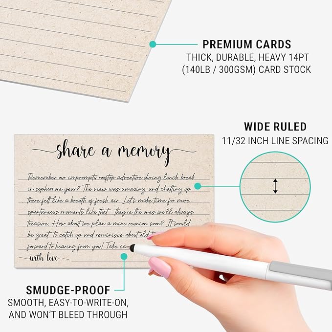 - Premium Card Stock: Thick, durable 14pt (140lb / 300gsm) card stock with a smooth, matte, easy-to-write-on finish. Heavy weight makes cards perfect for placement in a memory jar or book or on a memory board. Acid-free card stock won't yellow so your guests' memories and messages will stand the test of time.