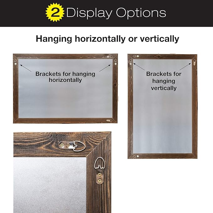 - EASY HANGING: This rustic wooden cork and white board comes with pre-installed brackets at the back and can be mounted horizontally or vertically