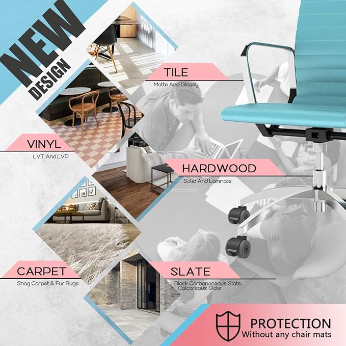 - ATOMDOC Fashionable Elemen – ATOMDOC’s chair wheels make your chairs look more fashion and more comfortable, which makes you feel satisfied with the fancy office chairs or the ordinary computer chairs. we have a no hassle 100% guarantee refund policy. ATOMDOC’s chair wheels will be the best choice to upgrade your chairs.