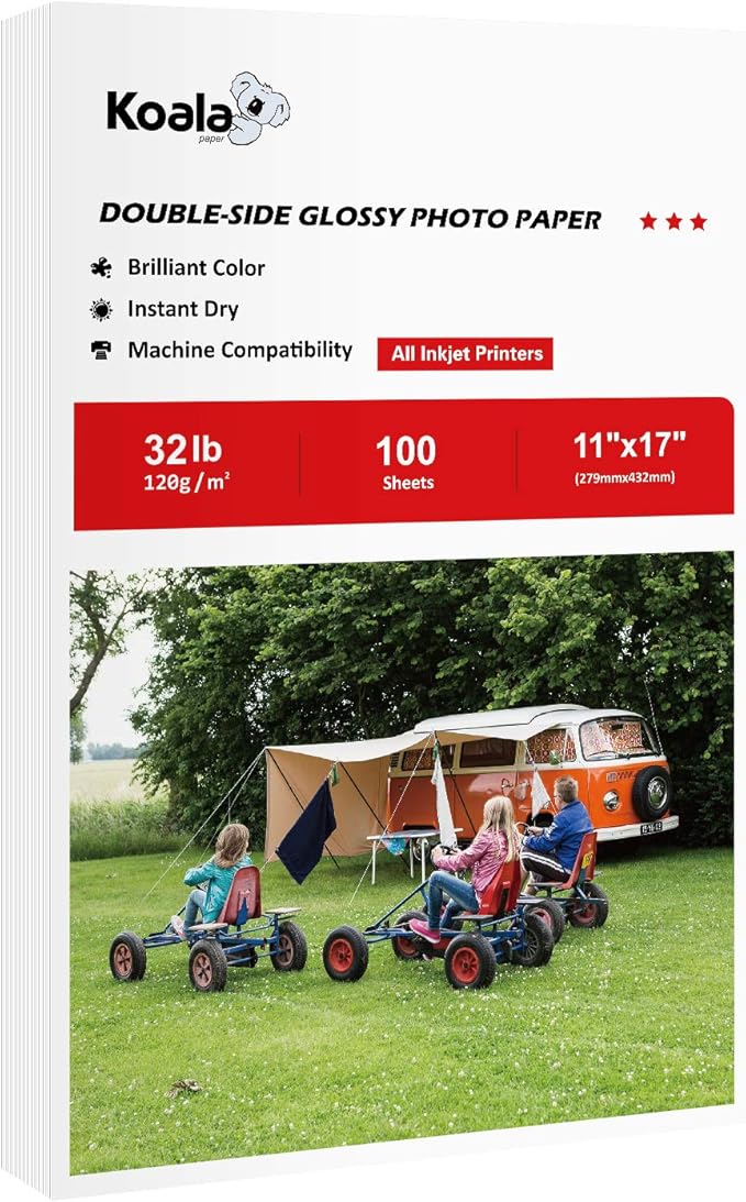Koala Double Side Thin Glossy Photo Paper 11x17 Inches 120gsm 100 Sheets Compatible with Inkjet Printer and Dye Ink 32LB