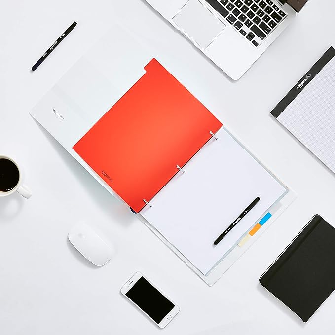 Amazon Basics Durable Multicolor 3-Ring Binder Plastic Divider Set with Tab Labels, 3-Hole Punched Letter Size 8-Tab Dividers, for School and Organization, 6 Pack, Assorted Colors