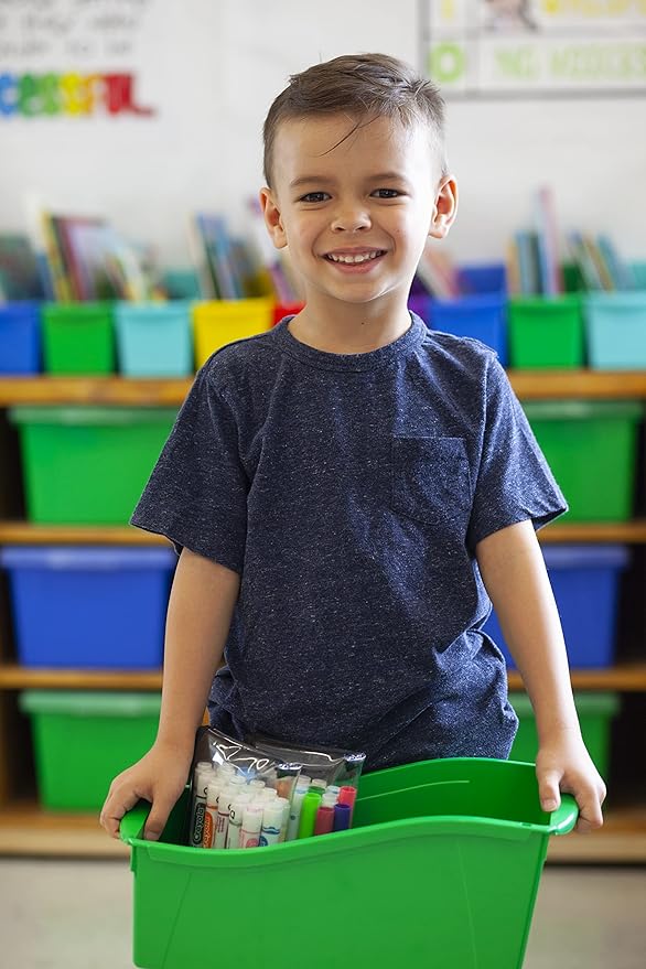 Storex Large Book Bin, Interlocking Plastic Organizer for Home, Office and Classroom, Purple, 6-Pack (71117U06C)