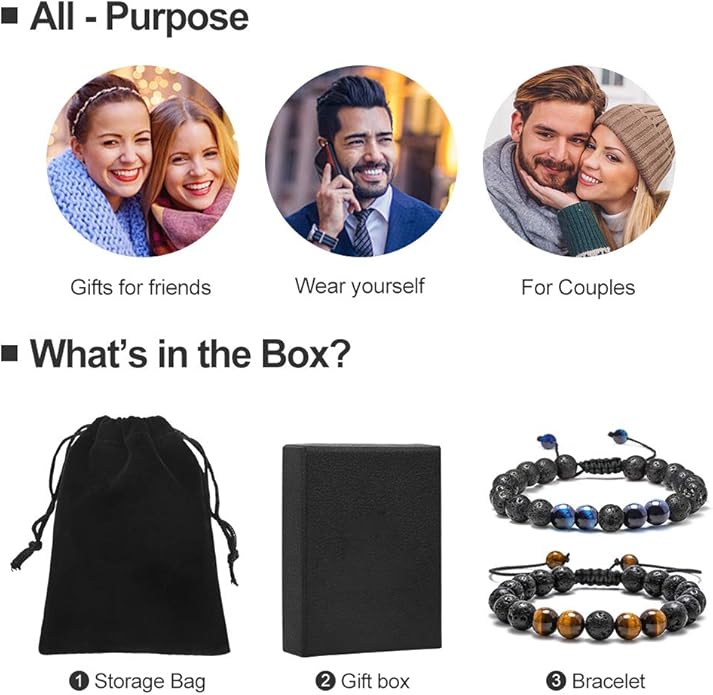 • PERFECT GIFT FOR MEN: Natural stone bracelets for men. It's perfect gifts in Fathers' Day, Birthday, Anniversary, Valentine's Day, Thanksgiving, Retirement, Graduation, or Christmas gifts for your father, husband, son, boyfriend, or someone closest to you.