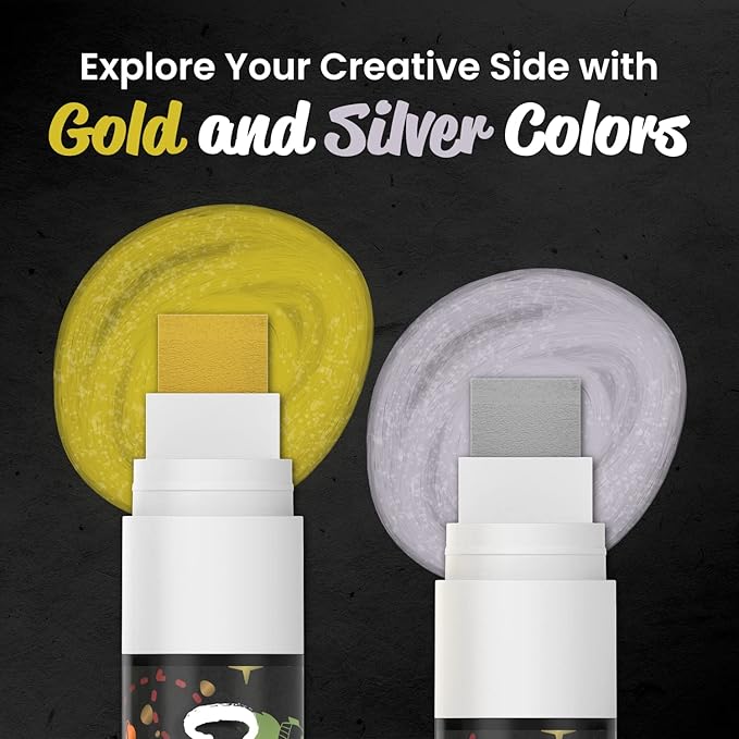 - 15mm Jumbo Metallic Chalk Markers | Gold & Silver - The 3 IN ONE NIB Rectangular Tip enables you to use the Markers as 3 Tips - Wide Lines, bold lines & thin fine lines