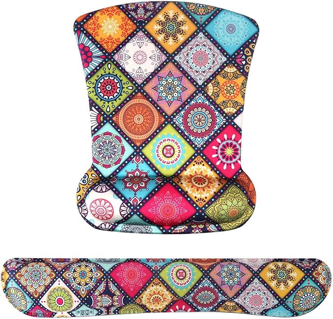 - Materials: With Comfortable Memory Foam & Breathable Material to the pads.The keyboard wrist & Mouse Wrist is made of cushioned neoprene.The fabric of the surface is super soft