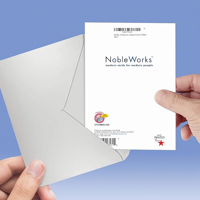 NobleWorks - 1 Funny Happy Birthday Greeting Card - Retro Old Man Humor, Notecard Talk Bubbles - Old Baby C7199BDG