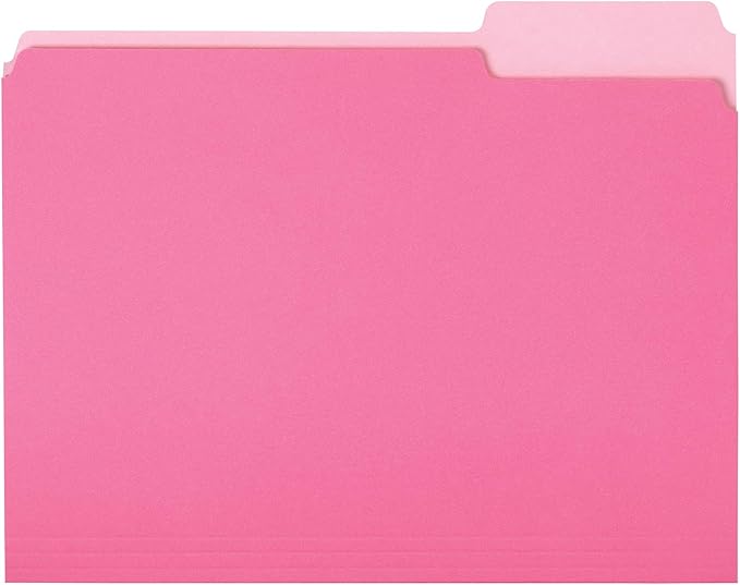 Amazon Basics File Folders, Letter Size, 1/3 Cut Tab, Pink, 36-Pack
