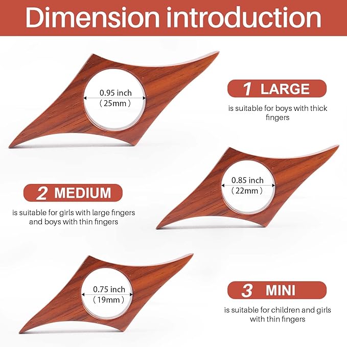 - 📖 Great Size - MINI 19mm (0.75") is suitable for children and girls with thin fingers, Medium 22mm (0.85") - for girls with thick fingers and boys with thin fingers, Large 25mm (0.95") – for boys with thick fingers. You can find the suitable one.