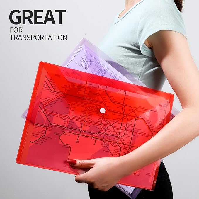 - Sturdy Folders for Documents: Made of premium PVC plastic, these plastic envelopes are thick, wear-resistant, hard to fade, waterproof, pretty protective; washable, reusable and long-lasting, has long service life; Translucent, easy to look inside and find things quickly and help storage.