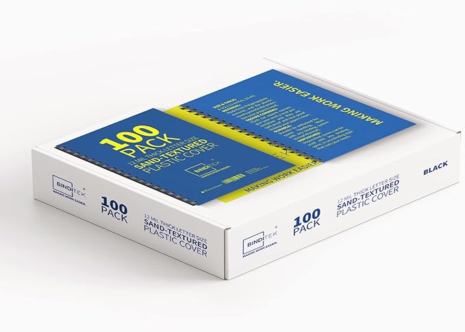 Binditek 100 Pack 12 Mil Sand-Textured Polycover - Plastic Binding Cover for Letter Size - Lightly Textured Sand Finish - Business Reports and Proposals - Square Corners, Un-Punched, Black