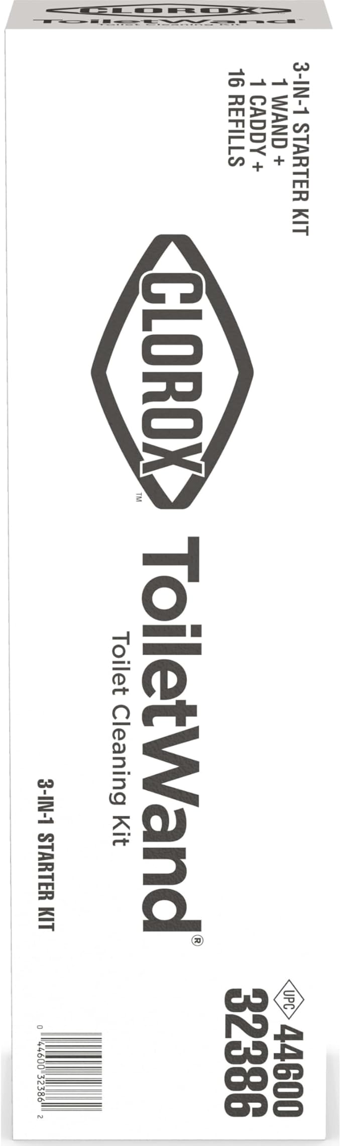 - WAND AND CADDY: Clorox ToiletWand comes with a long handle to help you clean from a distance, and a caddy to conveniently store scrubbing pad refills