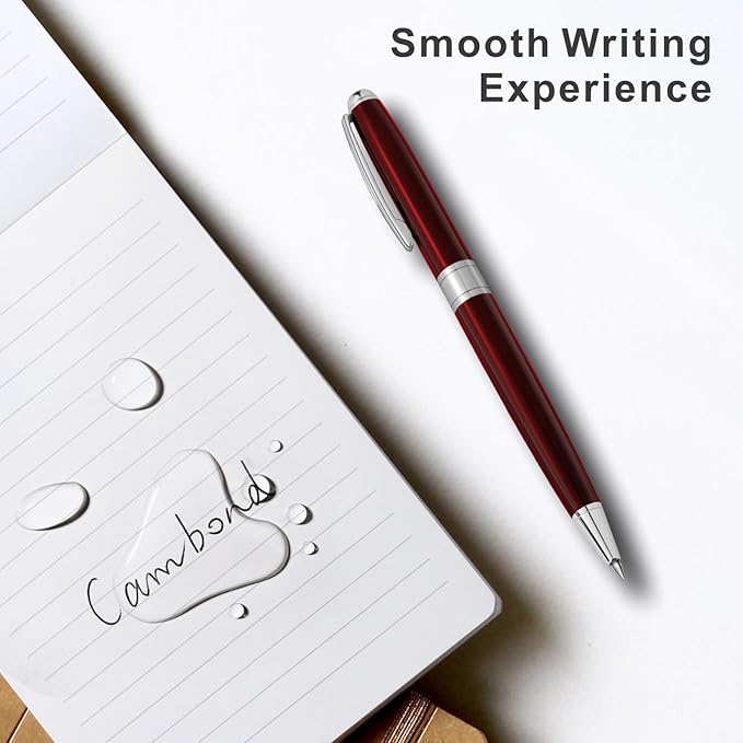 Cambond Ballpoint Pens Red Pens - Black Ink Fancy Pens for Journaling Gift Business Men Police Flight Attendants, Smooth Writing 1.0 mm Medium Point, 3 Pens with 3 Extra Refills (Red)