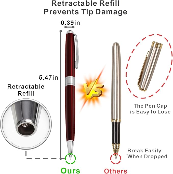 - Easy to use and durable : This writing pens is used by rotating its body. The advantage of the rotating style pen is that the pen core can be retracted when not in use, protecting the pen core from breaking