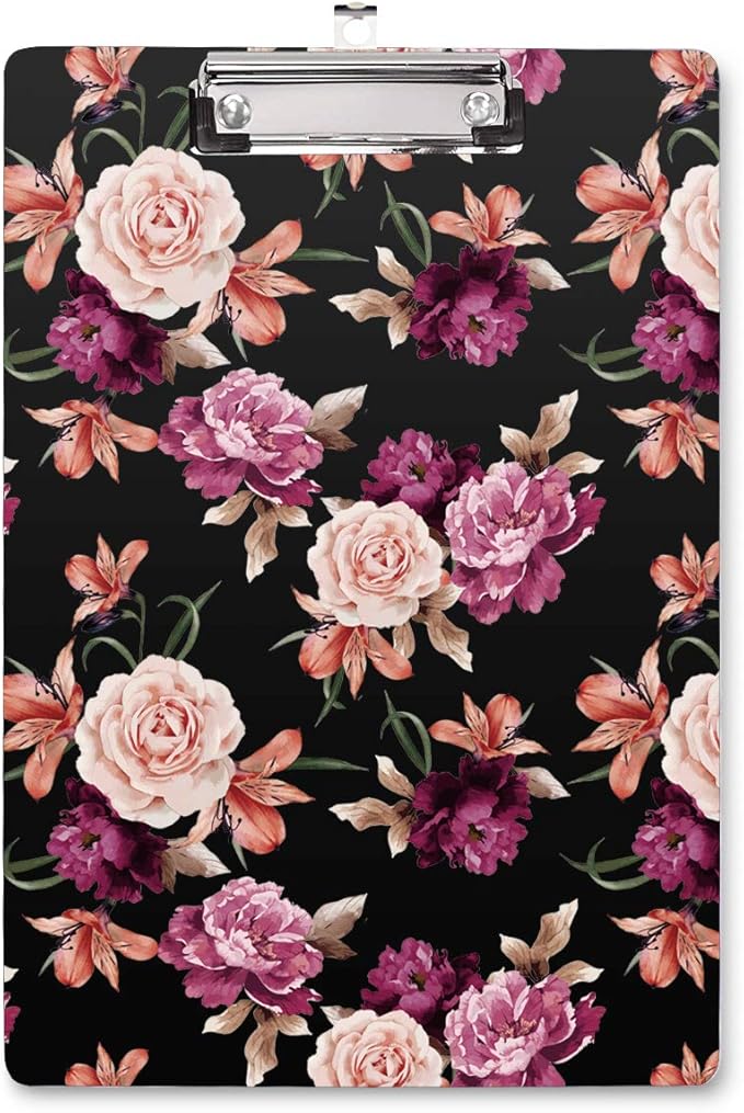 WAVEYU Clipboard Cute, Decorative Clipboard for Office School Hardboard with Low Profile Clip Flower Chic Clipboard Designed for Students Nurse Office Worker, Floral Pattern (12.5"x9")