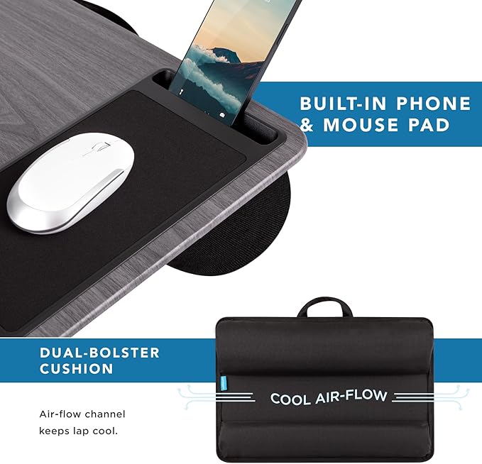 - Cool Comfort: Enjoy a stable surface with our lap desk's dual bolster cushion, designed for comfort and airflow, keeping your lap cool during extended use.