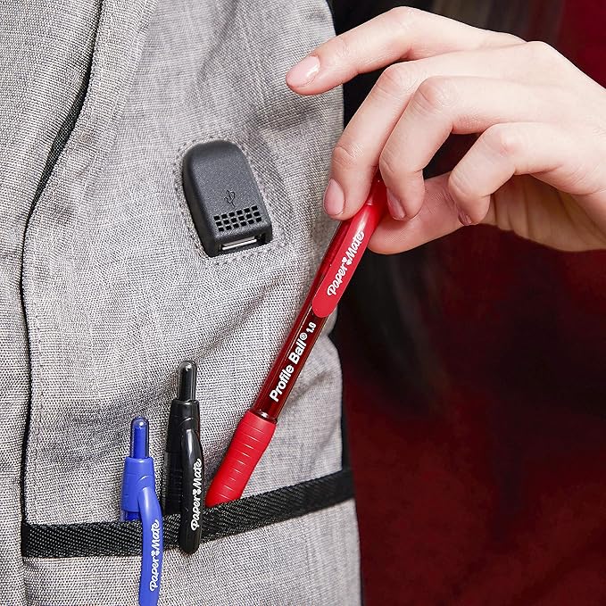 Paper Mate Ballpoint Pen, Profile Retractable Pen, Medium Point (1.0mm), Blue, 12 Count