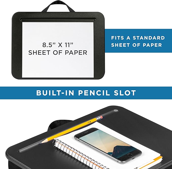 - Versatile: Use the Compact Lap Desk for homework, classroom work, an eating surface, or even as a remote workstation for tight spaces. Its built-in pencil tray keeps writing and drawing tools from rolling to the floor. Set it on your lap or use it on a table to add some extra height for greater comfort.