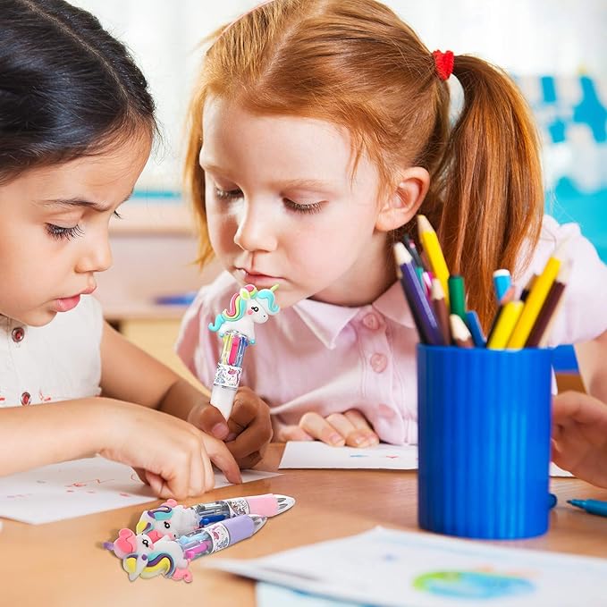 - Features: spring expansion design, convenient and fast, four colors can be easily switched, just press the top button of the pen to reset, different colors of writing experience to enhance the pleasure of writing or painting process, lovely mini unicorn head design, to adults or children bring fun, better completion of painting or writing