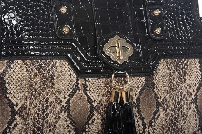 - Multi-color python faux leather with black patent style faux leather alligator accent trim rolling laptop bag, rolling briefcase or carry all bag.